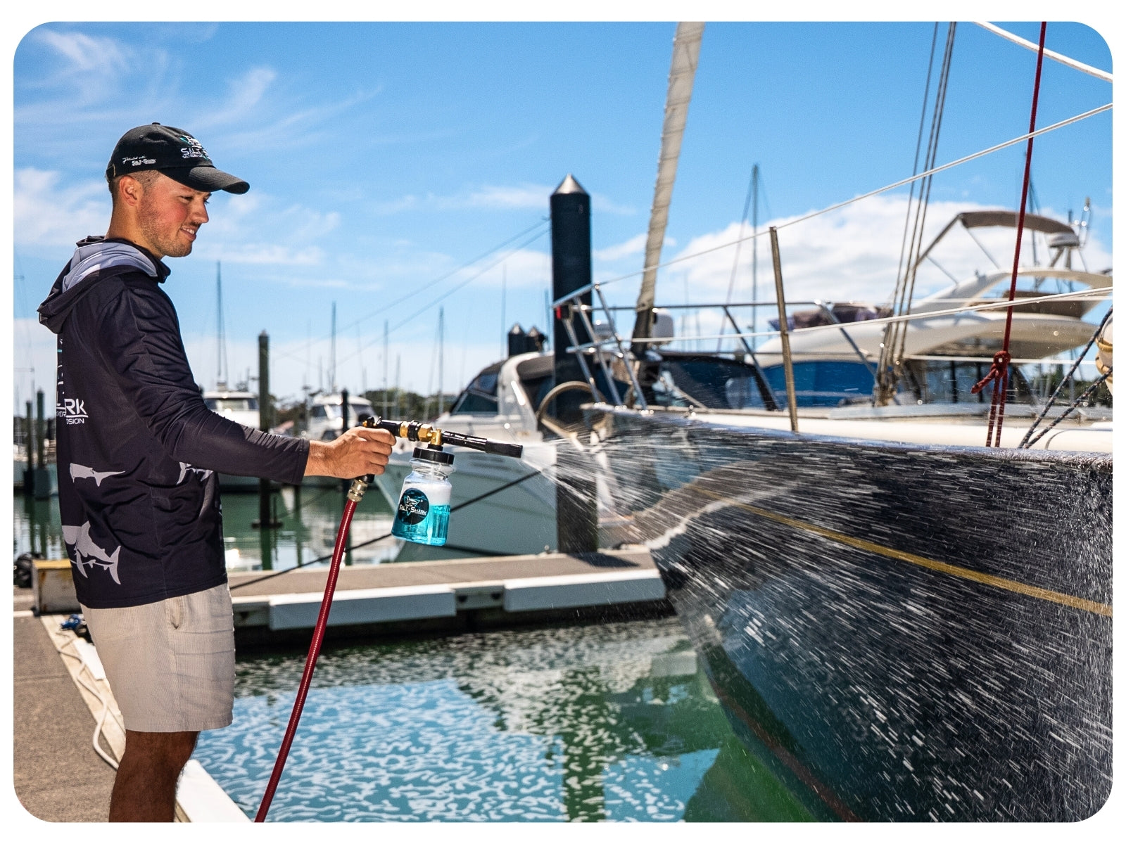 Have tried your product on my 8mtr boat with a hose mixer, was truly amazed at the end result after a long days fishing with salt spray everywhere, hardly any scrubbing, foam/soap every surface followed by easy rinse off which left boat looking fresh and shiny, but best of all there were no streaks on the glass or paint work which usually needs a wipe when dry, used one and a half pumps of product ( less than 60 mls) into my mixer bottle and easily cleaned the boat, trailer and fishing gear, will save money on future washes 🏅